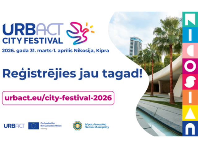 URBACT Nacionālais kontaktpunkts Latvijā aicina piedalīties URBACT Pilsētu festivālā 2026. gadā! Festivāls norisināsies no 2026. gada 31. marta līdz 1. aprīlim Nikosijā, Kiprā.